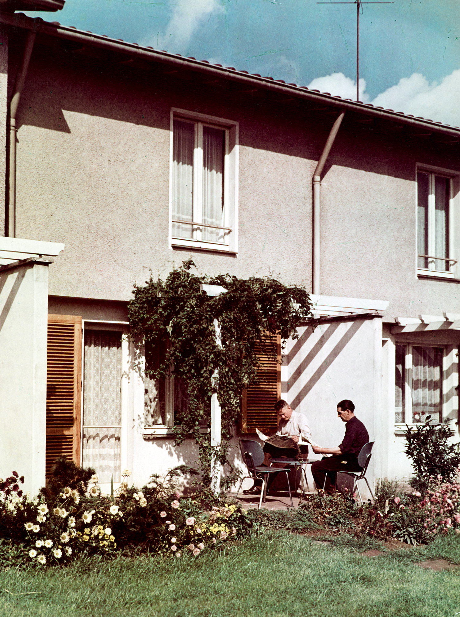 Die Bilderserie »Schlechte Wohnlage« von 1952 zeigt die anspruchslosen Altbauquartiere mit Blick aus dem Wohnzimmer auf Halden und Hochöfen. Die »Wohnwünsche der Bergarbeiter«, so der Titel einer Studie von 1954, waren eindeutig: Ein Eigenheim mit Garten sollte es sein, oder zumindest eine Mietwohnung in einer überschaubaren Kolonie mit viel Grün. Gebaut wurden allerdings vor allem zwei- oder dreigeschossige Zeilenbauten, bisweilen mit Ställen und Gärten für die Selbstversorgung der Bewohnenden. Es gab aber auch größere Mehrfamilienhäuser.